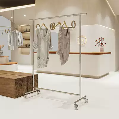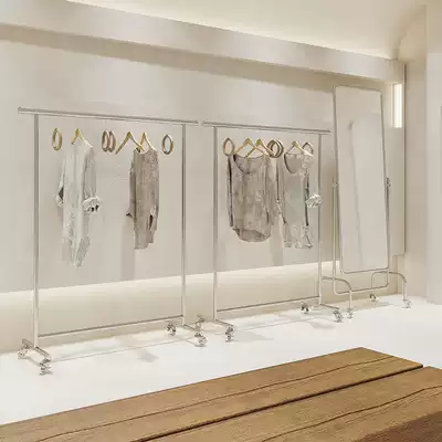 Clothing display stainless steel floor creative caster Island shelf men's and women's shelves the bending