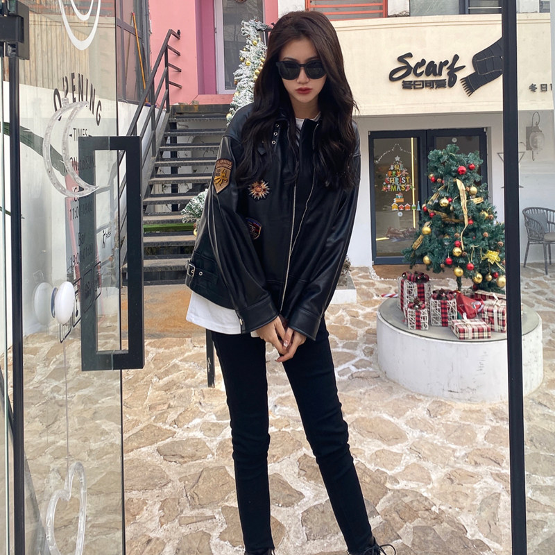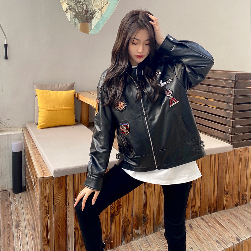 High-end New Zealand genuine leather sheepskin leather motorcycle spring 2022 new short women's fashion jacket