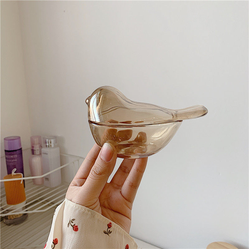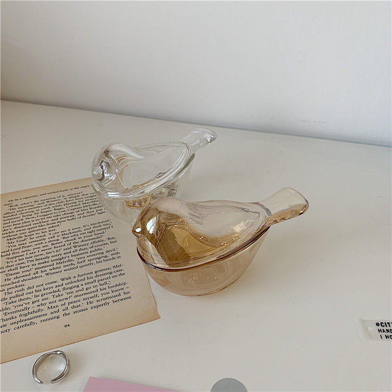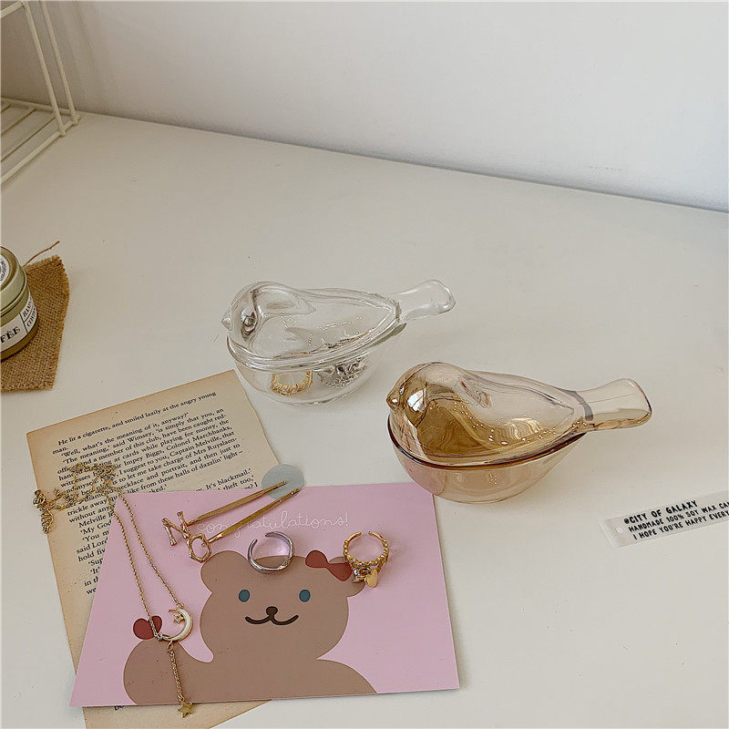 * Beautiful little aunt * ins wind amber color small bird glass earrings Ring Jewelry Containing jar Decorative Box