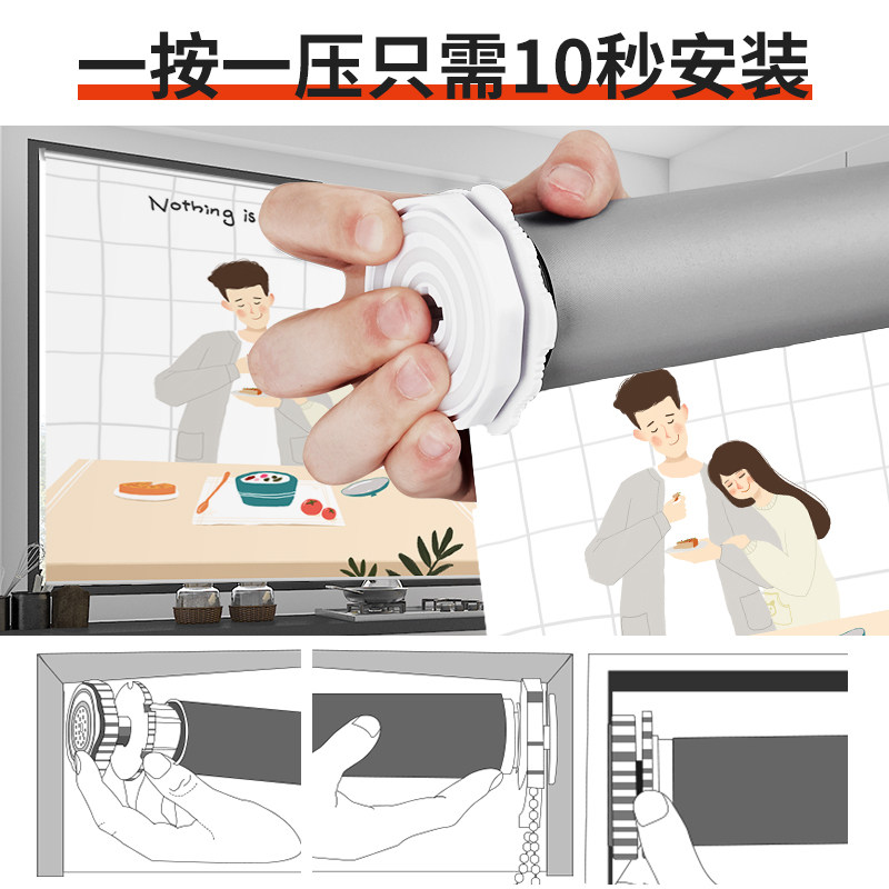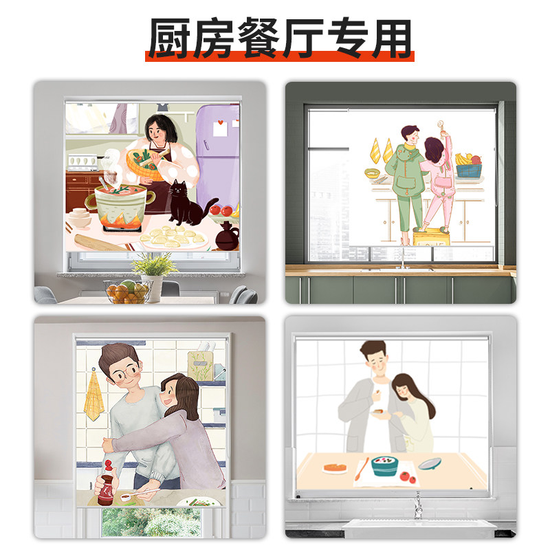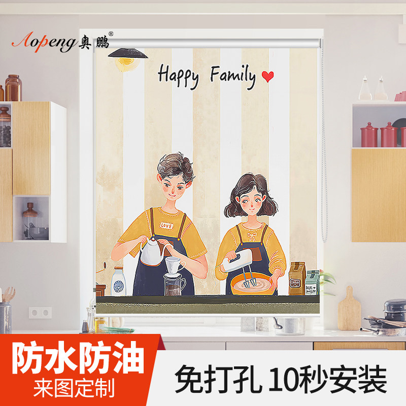 Intimate couple kitchen curtains without punching mounted shading waterproof oil shade curtain custom roll pull-out dining room