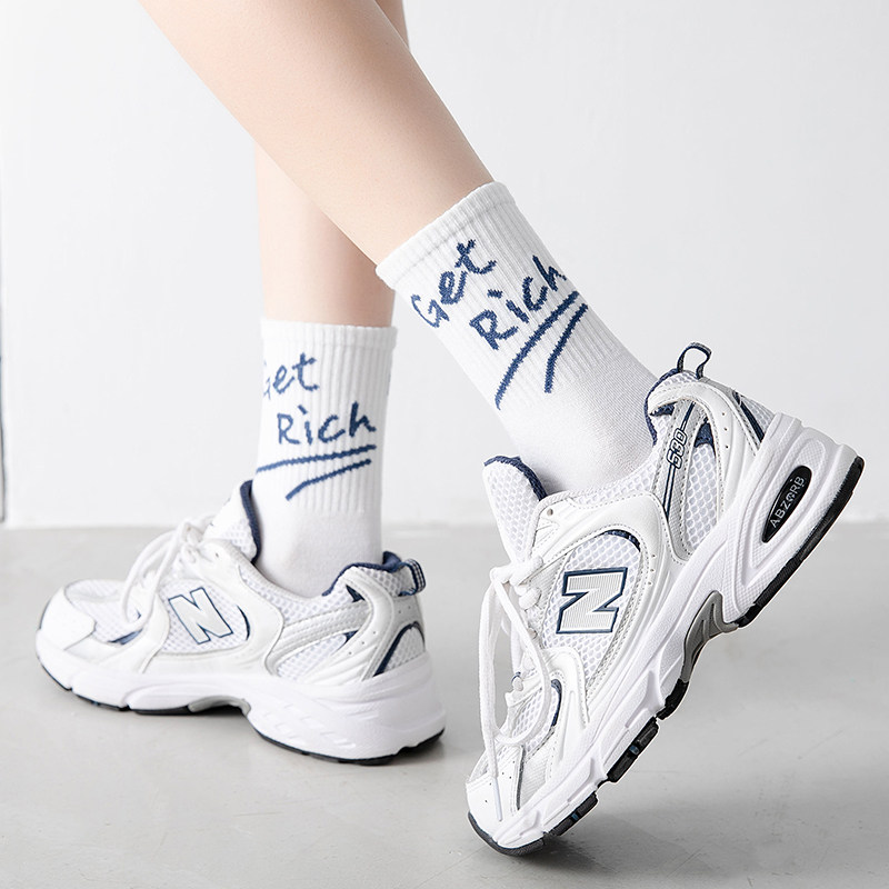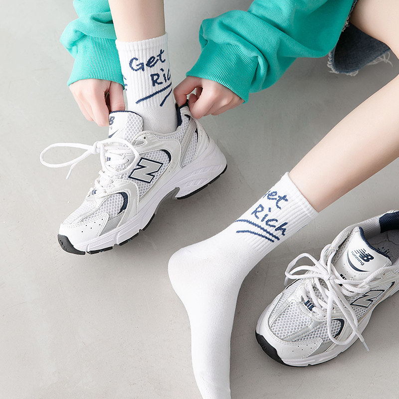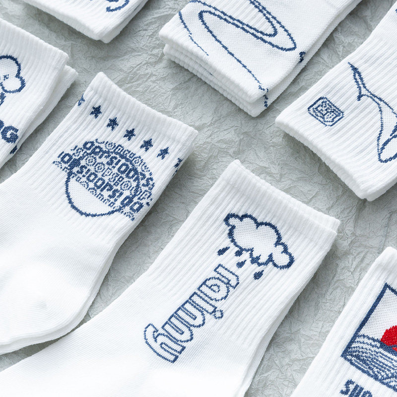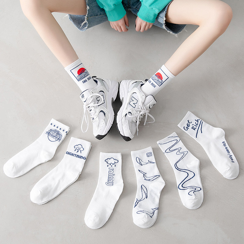 Socks women's summer thin mid-tube socks Pure cotton ins tide spring and summer stockings Summer women's socks summer white cute long tube