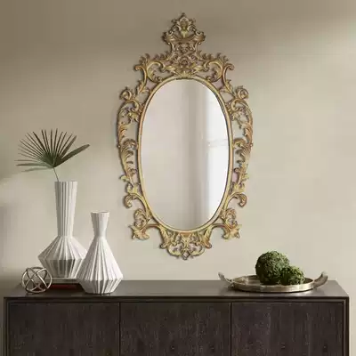 Neoclassical carved decorative mirror retro porch mirror bedroom cosmetic mirror dining room mirror light luxury wall decoration mirror can be customized