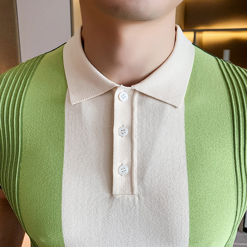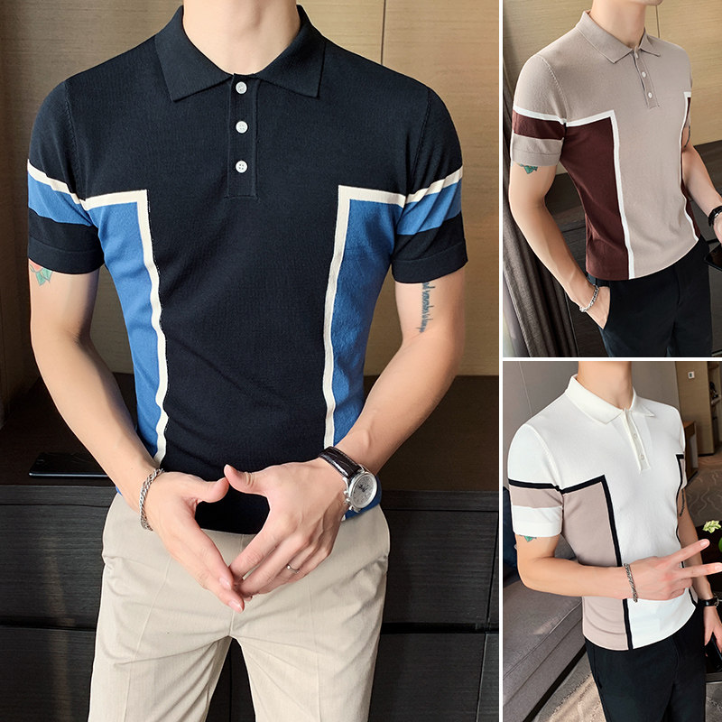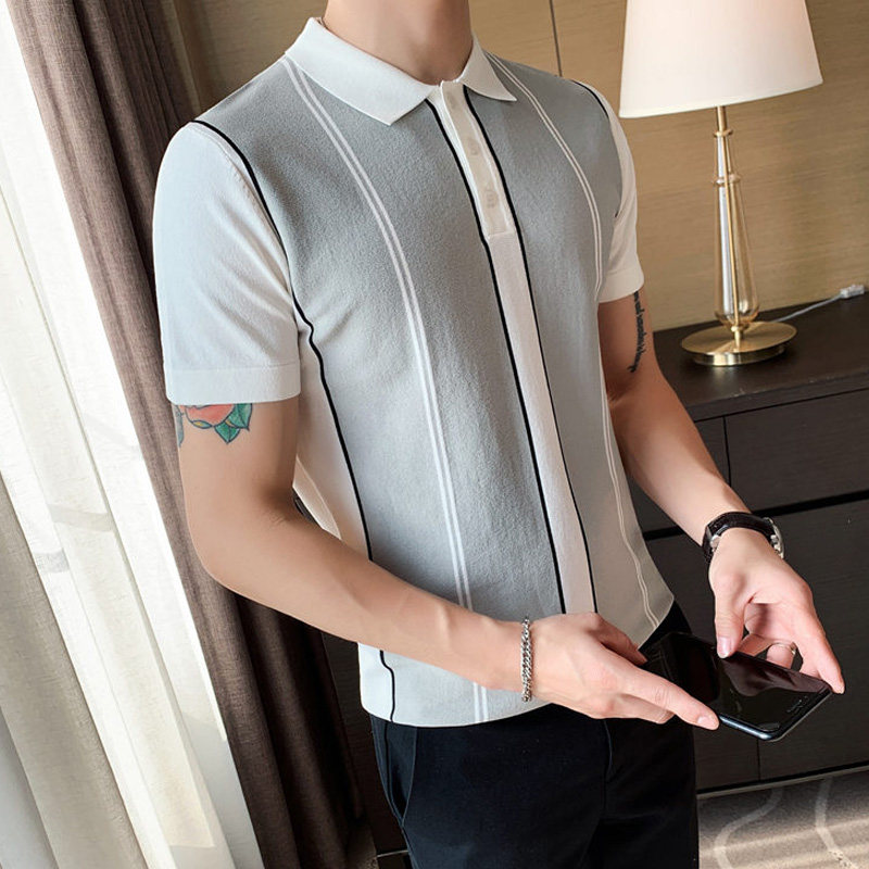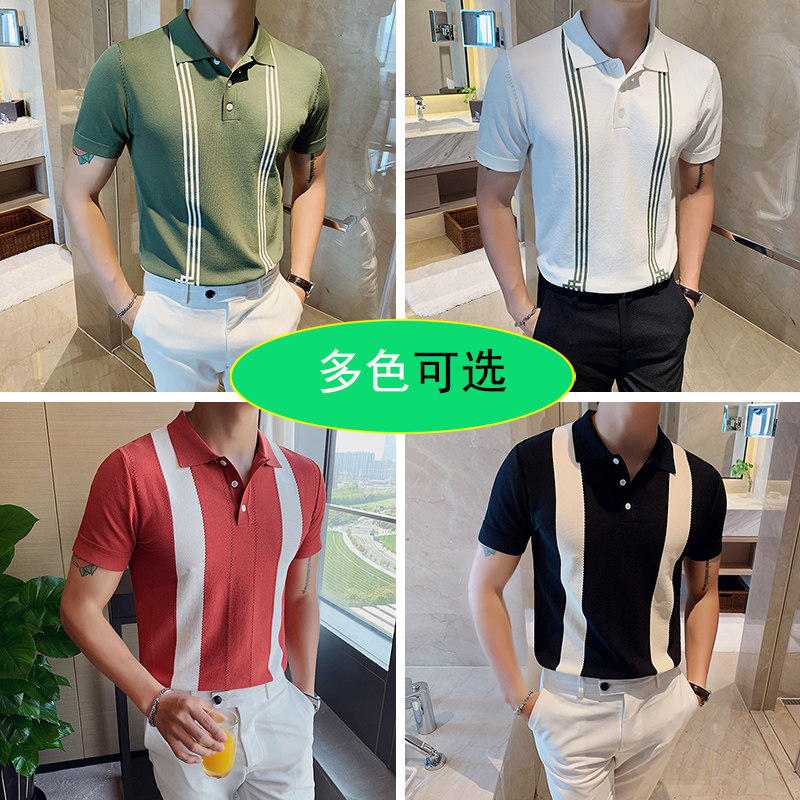 Men polo shirt short sleeve han edition summer high-end semi-sleeved piece-collar tops knitted ice wire t-shirt men