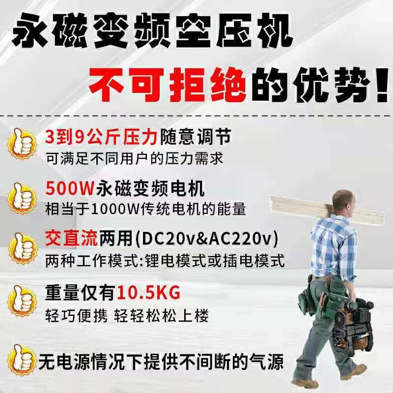 Iron AC and DC dual-purpose lithium battery air compressor wireless portable small silent high-voltage high-power inflatable