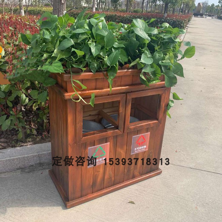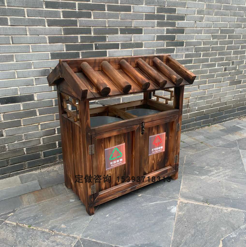 Outdoor anti-corrosion wood trash can scenic spot retro trash can custom ancient town antique outdoor peel box sanitation bucket - Taobao