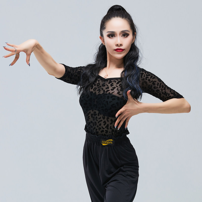 CONNY sexy Latin tops perspective dance dress adult trendy sleeve national standard Moden topper