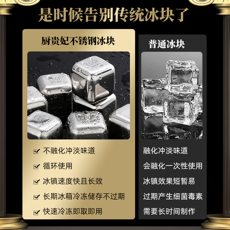 Germany CUGF stainless steel ice cube solid ice particles 304 frozen ice tartar whiskey ice artifact ice clip