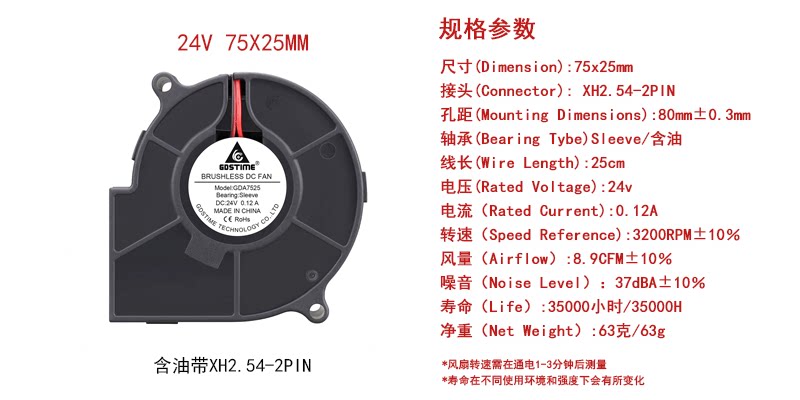 Shitai new DC24v 75x25mm 7 5CM cm cm 7025 turbo blower cooling fan