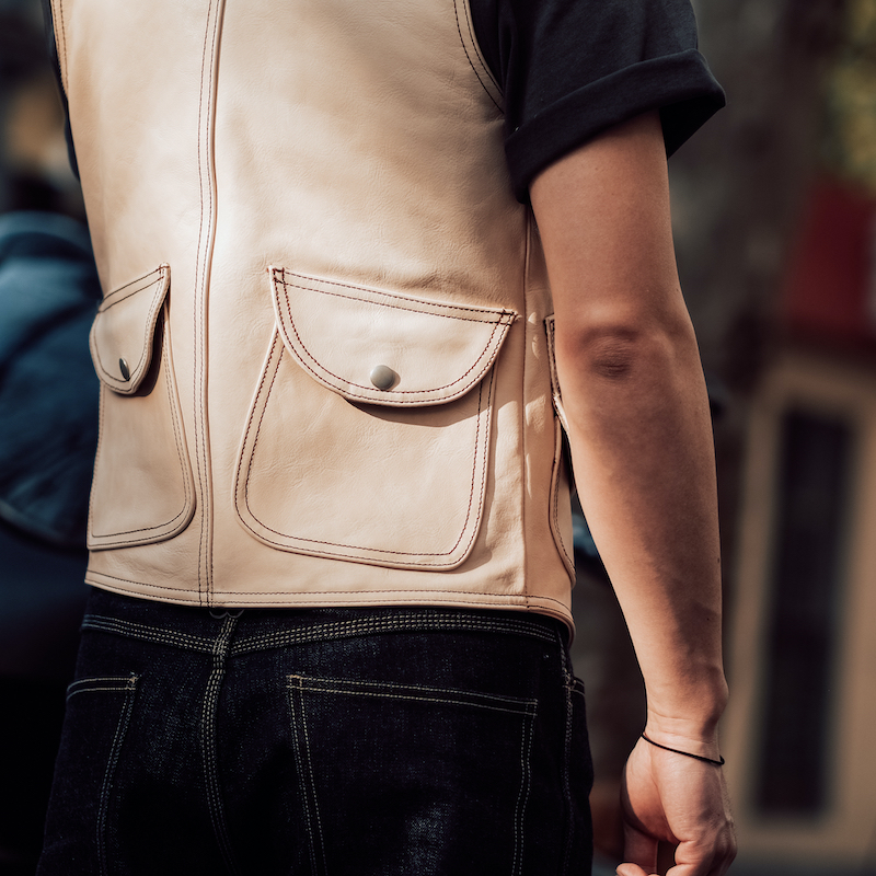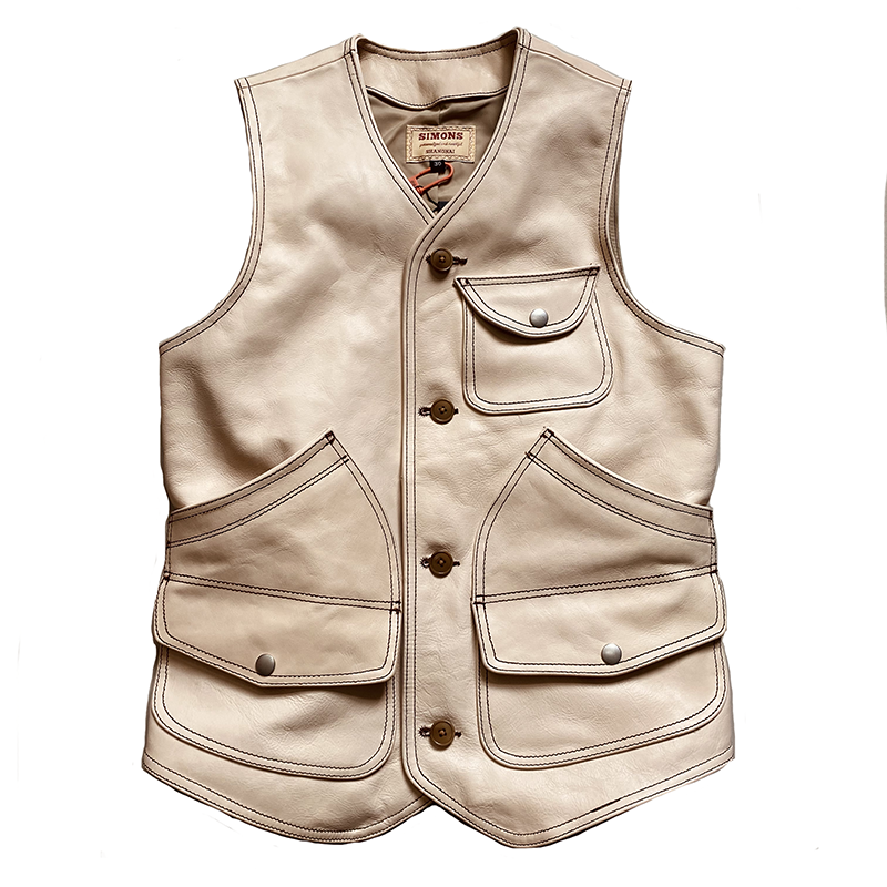 Imported primary colours All-rooted tannins Bull Leather Vest Genuine Leather waistcoat Multi-pocket Body Hunting Fw Version Fruit Button