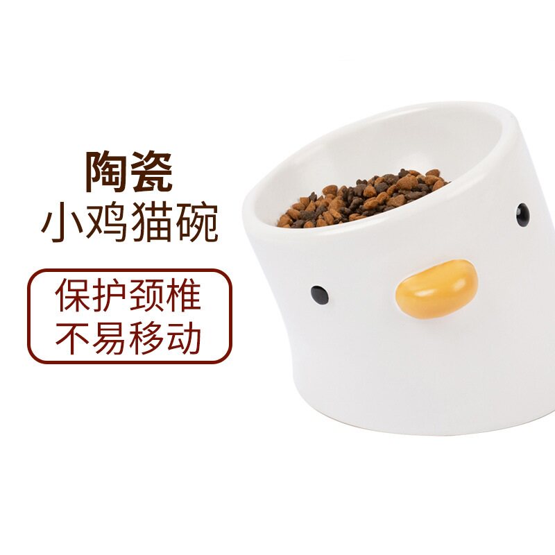 PURROOM chicken ceramic cat bowl protects cervical slanted mouth anti-overturning pet small dog anti-black chin food bowl