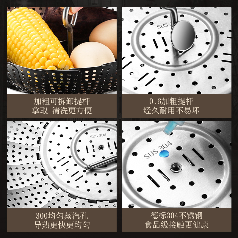 304 Stainless Steel Steamer Riser Water home Mighty Steam Cage Folding Transpire Pan-Multi-functional Steamer Steaming rack