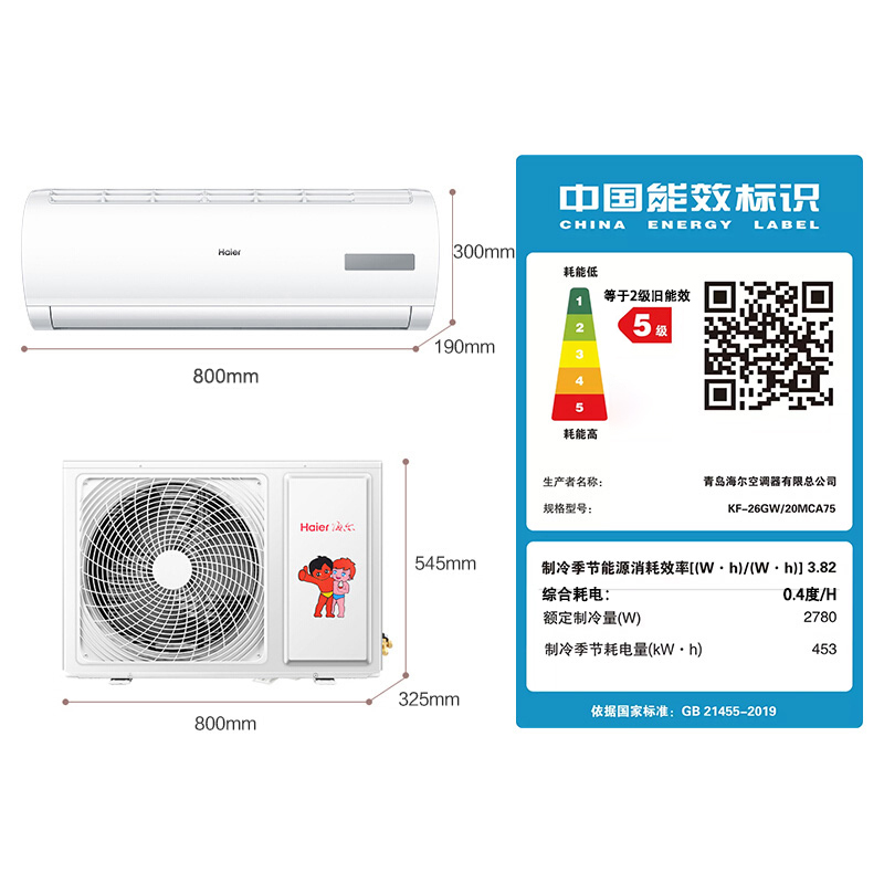 Haier Haier air conditioner large 1p single cold fixed frequency KF-26GW 20MCA75 household wall-mounted bass energy saving