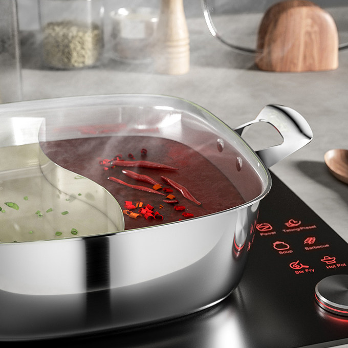 304 Three - layer steel double ear hot pot cleaning soup and duck electromagnetic oven special - shake hot pot thicker capacity