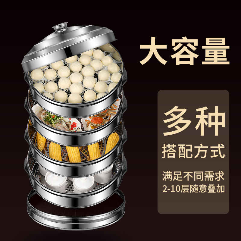 Stainless steel steamer household steaming drawer Commercial steaming bun steamed steamer cage drawer multi-layer large large capacity oversized