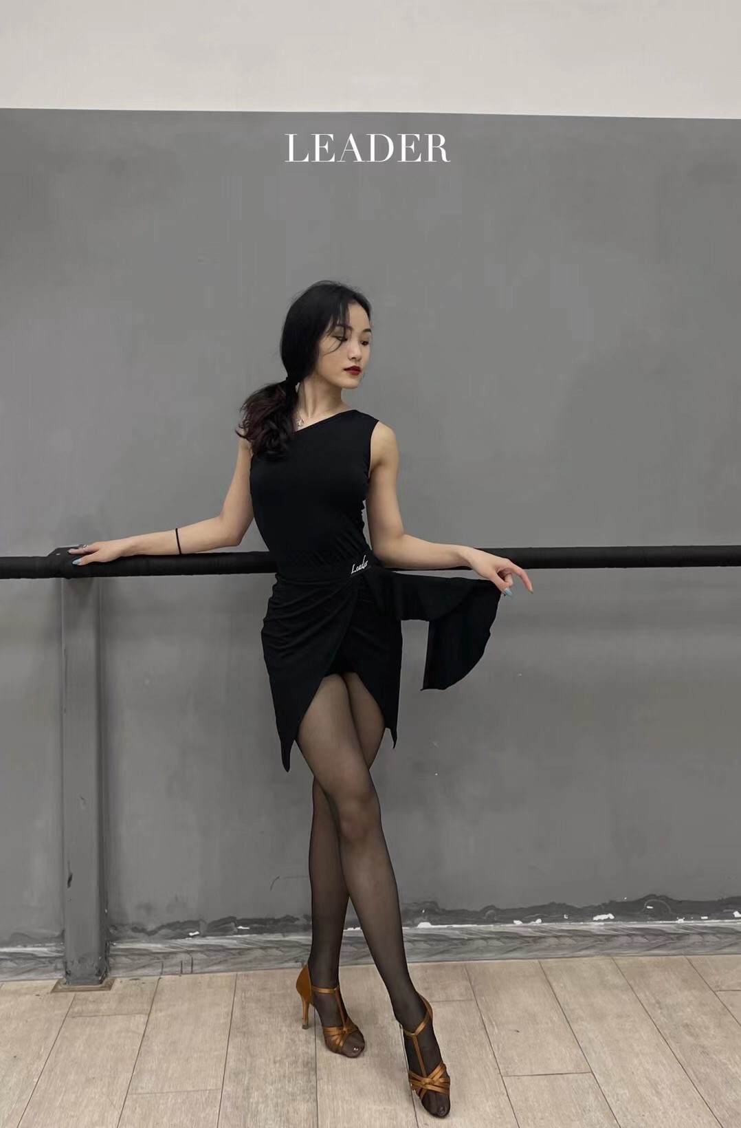Leader Latin dance slanted shoulder halter top with chest pad irregular split skirt practice clothes female adult