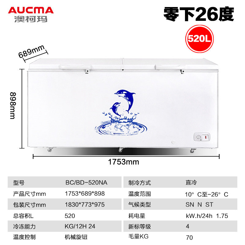 Aucma BC BD-520NA large freezer freezer commercial large-capacity freezer freezer horizontal energy-saving refrigerator