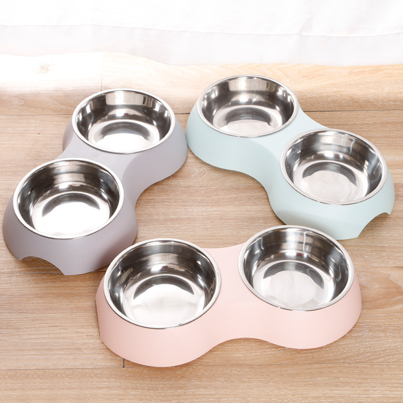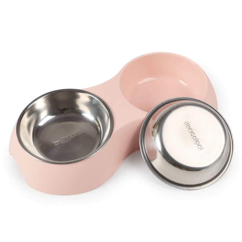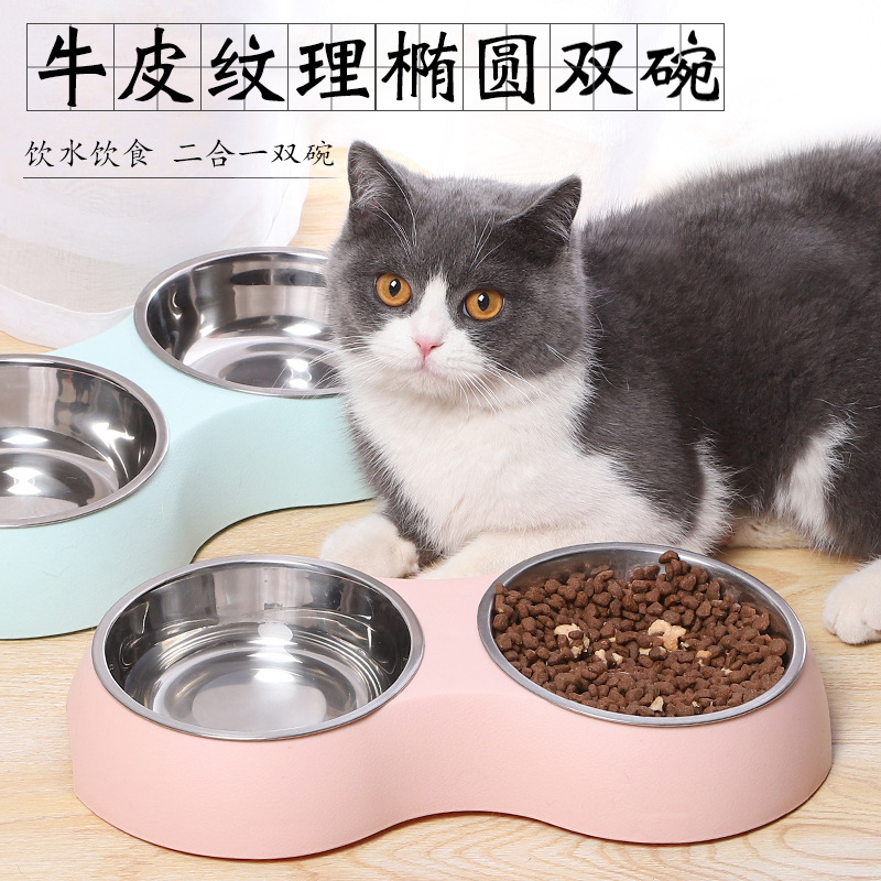 Macaron-colored cowhide texture pet double bowl INS style oval simple pet dog bowl cat bowl