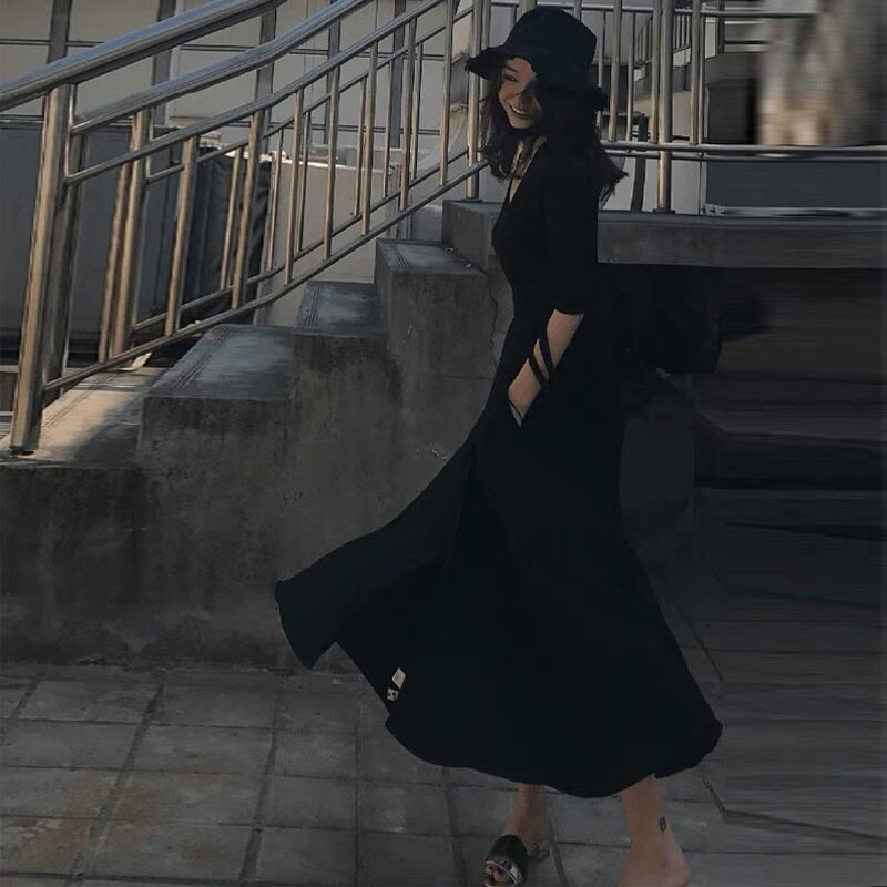 Dress 2022 early spring new black French Hepburn style V-neck slimming one-piece wrap little black dress