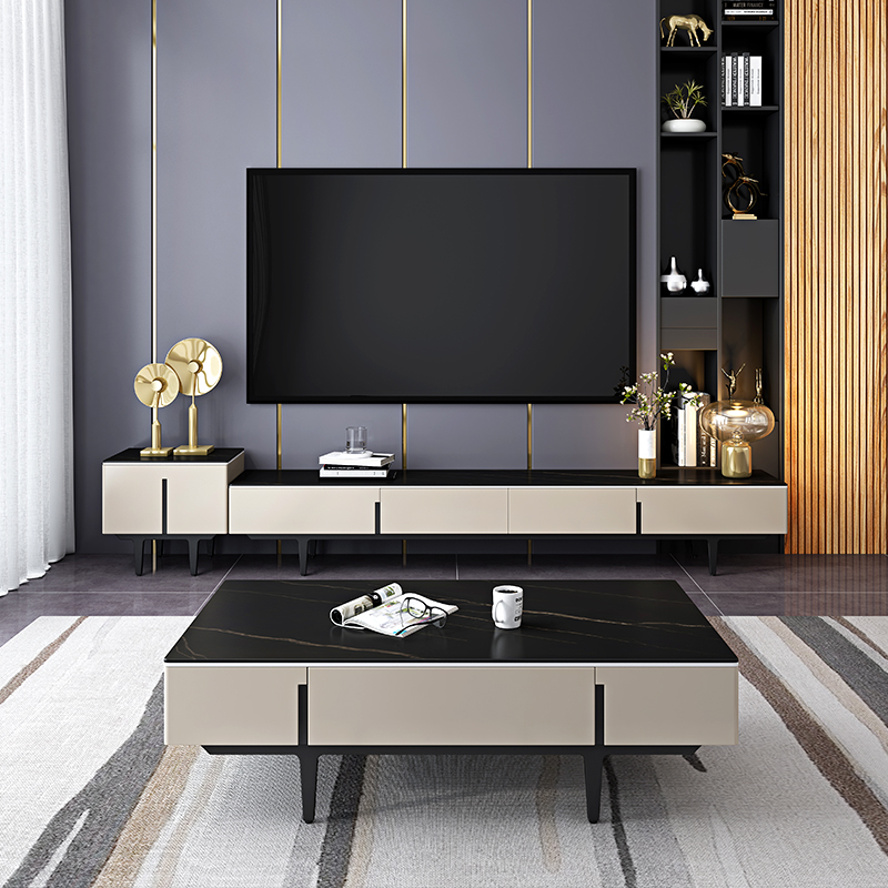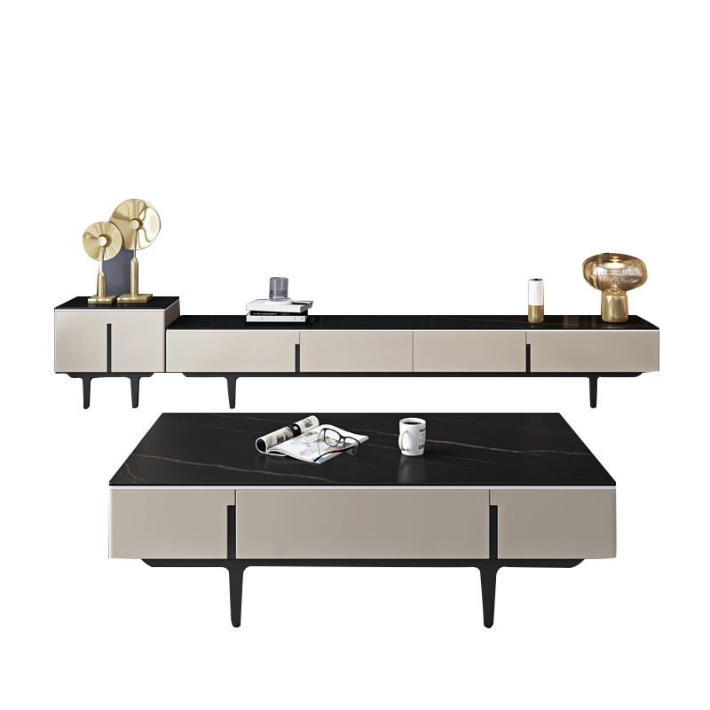Italian minimalist coffee table TV cabinet combination light luxury modern minimalist master design living room household rock board square tea table