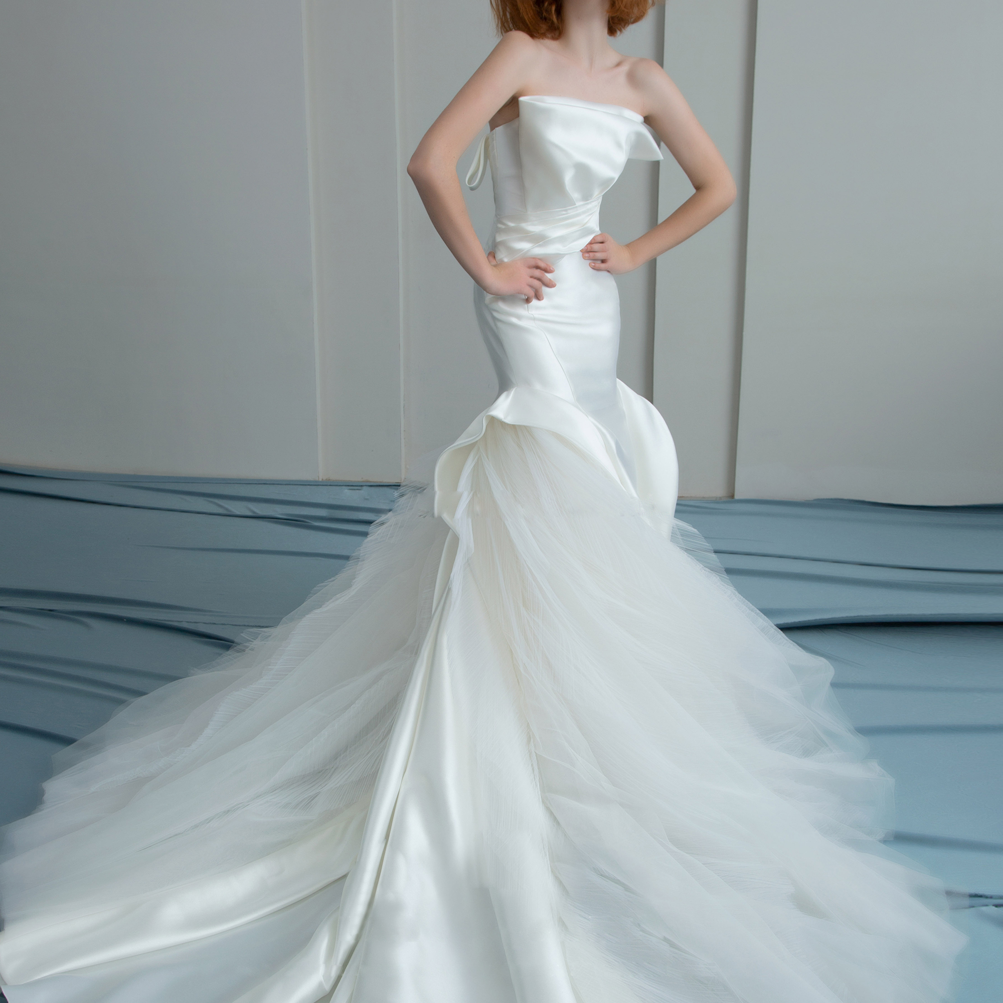 Wedding dresses 2022 new brides minimalist French web-yarn satin sashimi to greet the end of the fish