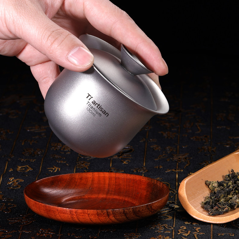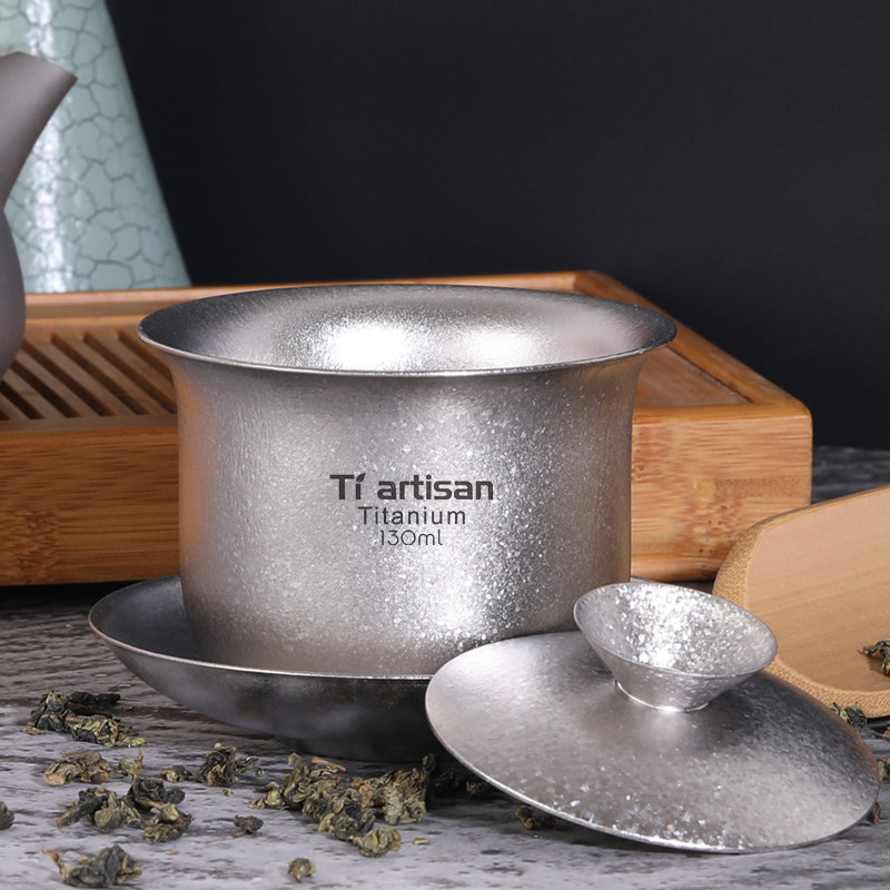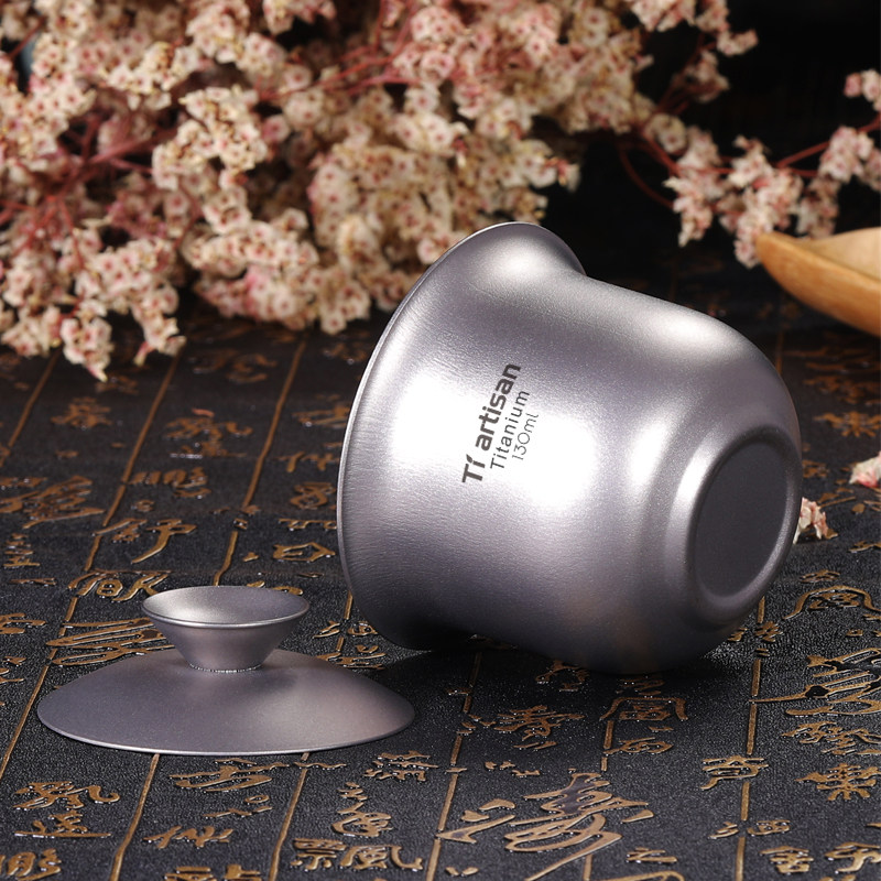 Titanium craftsman pure titanium double-layer tea bowl Tea Cup home tea maker retro cover Bowl portable outdoor travel Master Cup