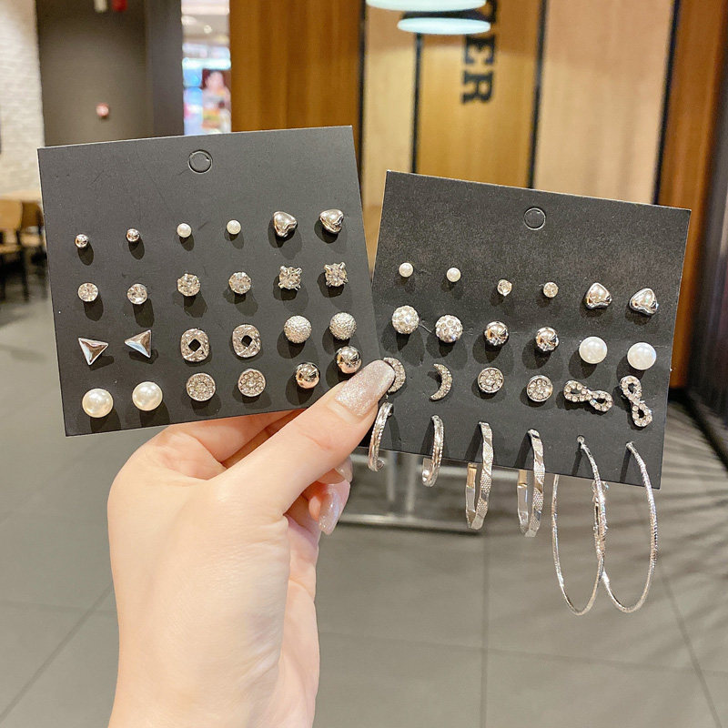 Nine sets of small ear rings twelve pieces of large earrings golden 2#十二件套大号耳圈 silver twelve pieces of treehorn gold twelve pieces of set ear-pin silver sea star 6 pieces