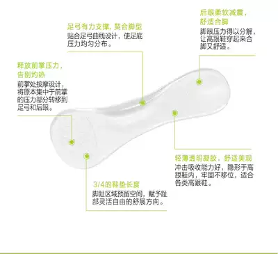American ProFoot sandals non-slip insoles self-adhesive women's summer high heels thin transparent silicone pain-proof arch