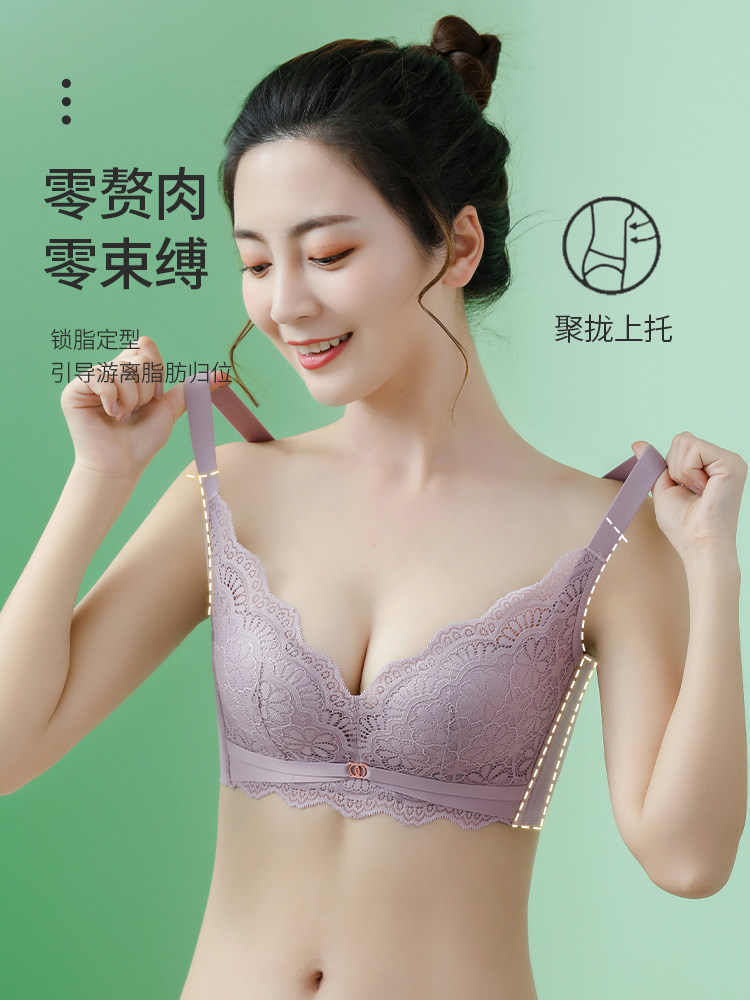 Modal underwear women's small breasts gathered and closed breasts anti-sagging bra sexy lace adjustment bra