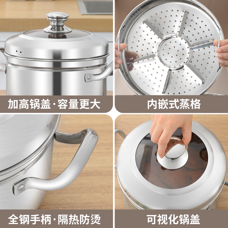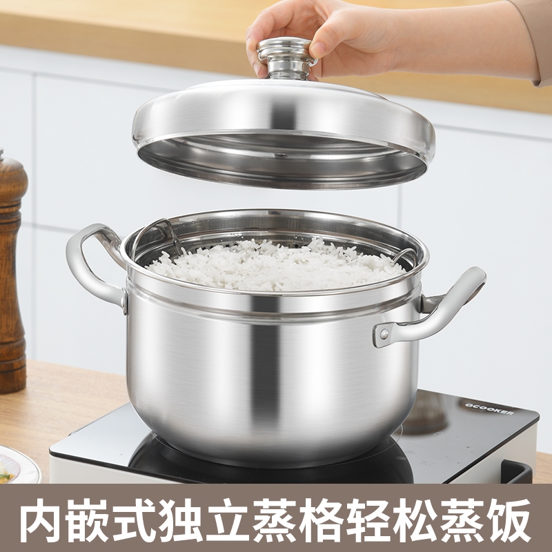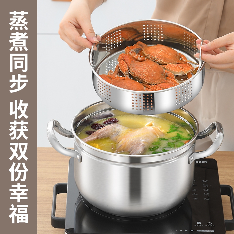 Japanese-style small steamer 1-layer 304 stainless steel household thickened draining steaming electric pot single-layer water-proof multi-purpose cooking soup pot
