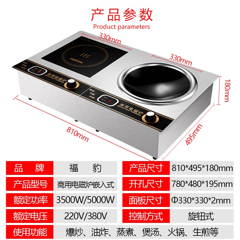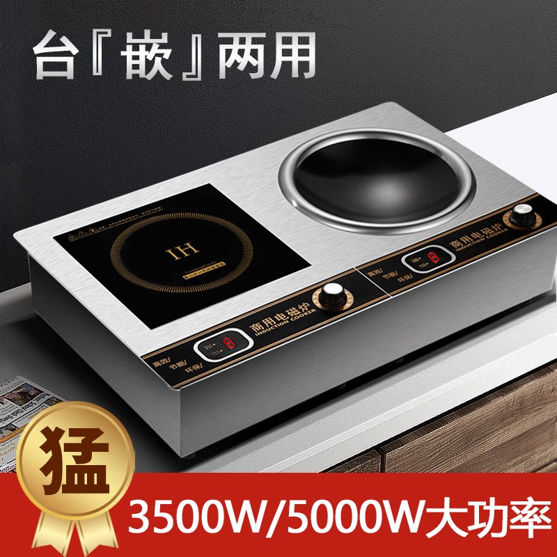 Commercial High-power Induction Cooktop double head 3500W Embedded home flat concave surface Electric frying stove 5000W Hotel Double-mouth gas stove