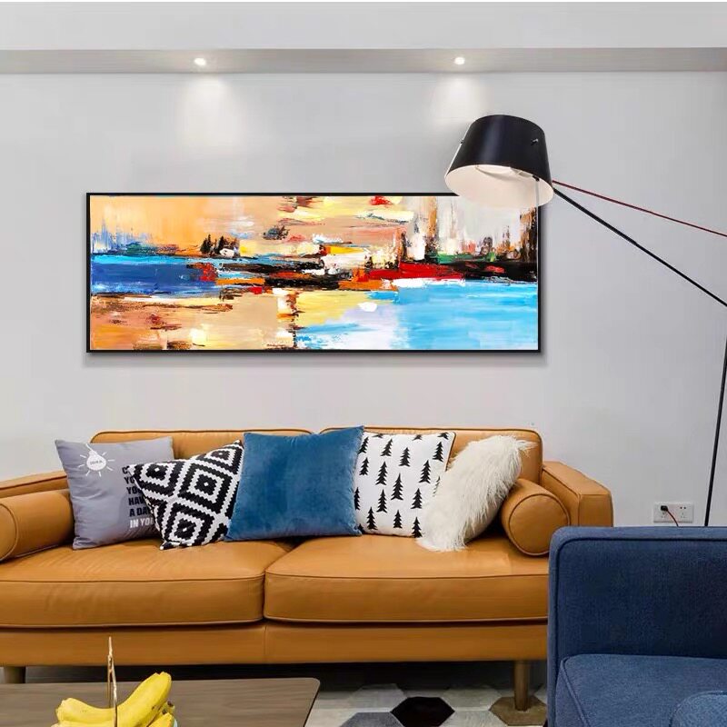 Living room sofa background wall decorative painting modern simple abstract murals light luxury atmospheric hand painted hanging painting dining room oil painting