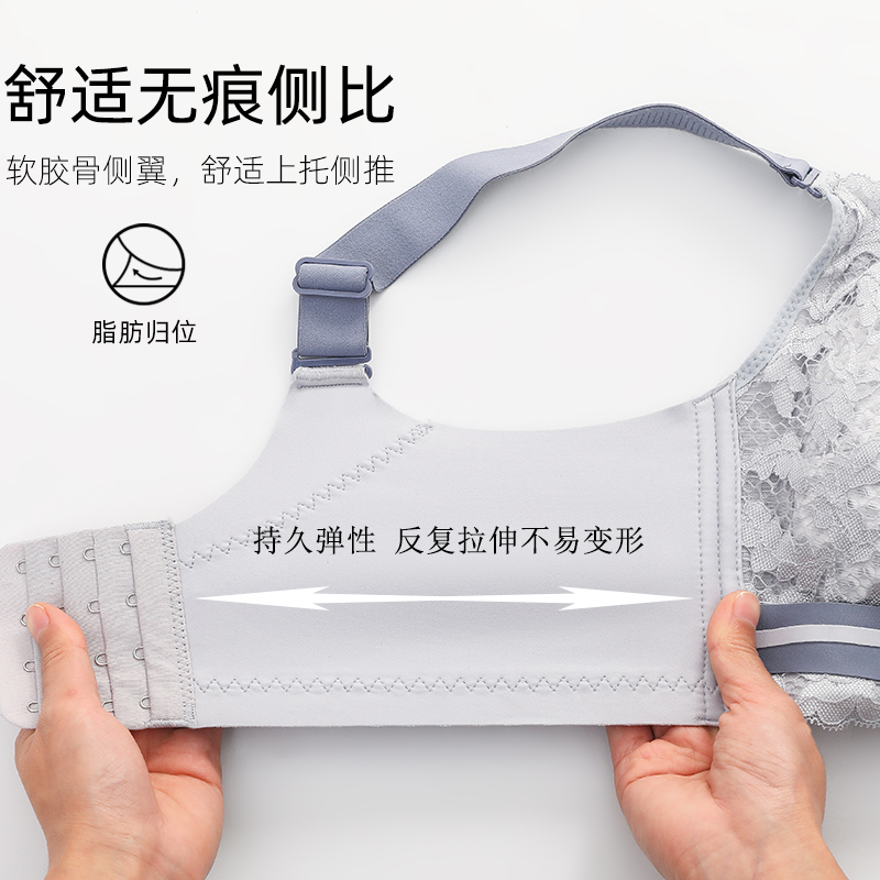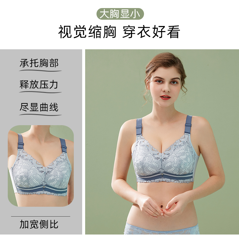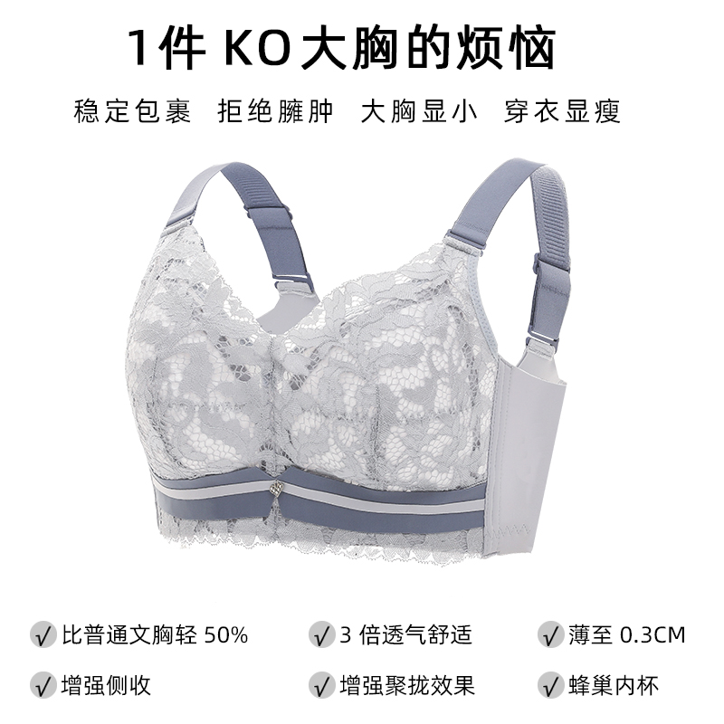 Large chest small adjustment type summer large size bra cover underwear women's ultra-thin section No trace no rims anti-sagging gathered