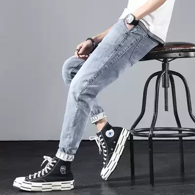 Summer jeans men thin slim straight men men ankle-length pants stretch Tide brand casual loose 2021 pants men