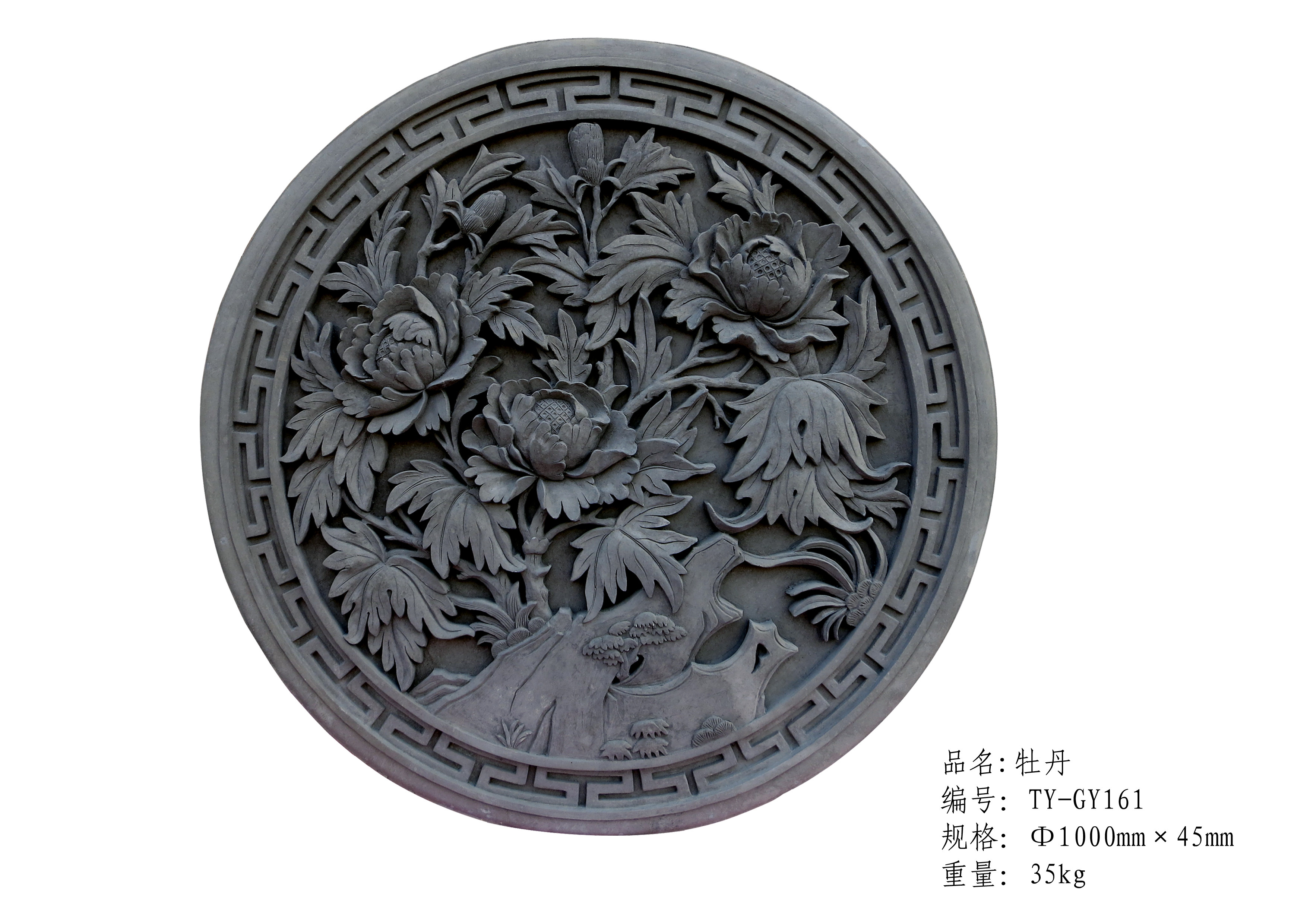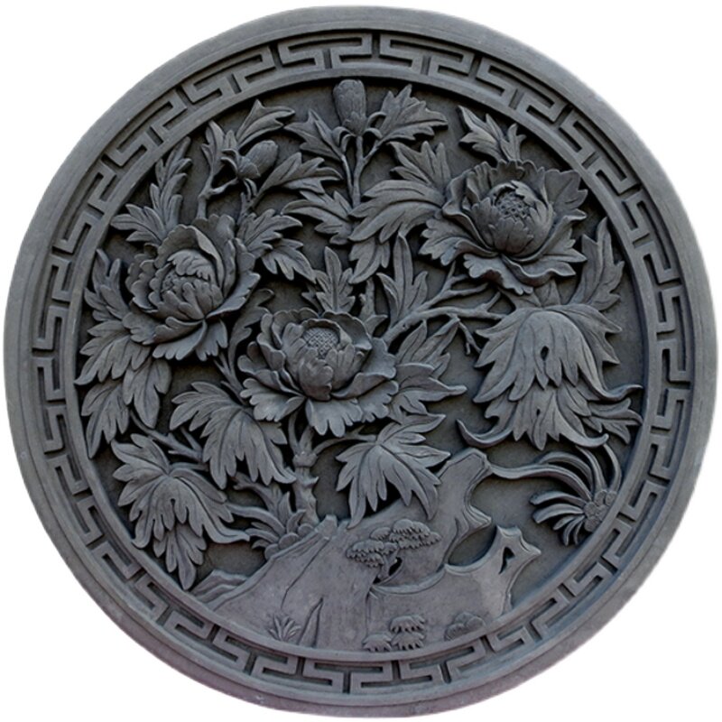 Antique brick carving round peony pattern Chinese courtyard wall decoration pendant courtyard ancient building background wall shadow wall