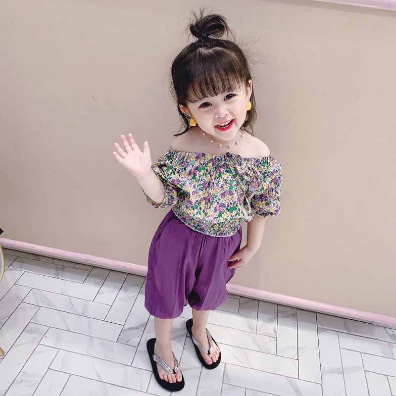 Purple Flowers Single Piece Blouse Blouse Purple Single Anti-mosquito Pants Blouse Pants Two Pieces
