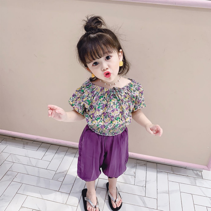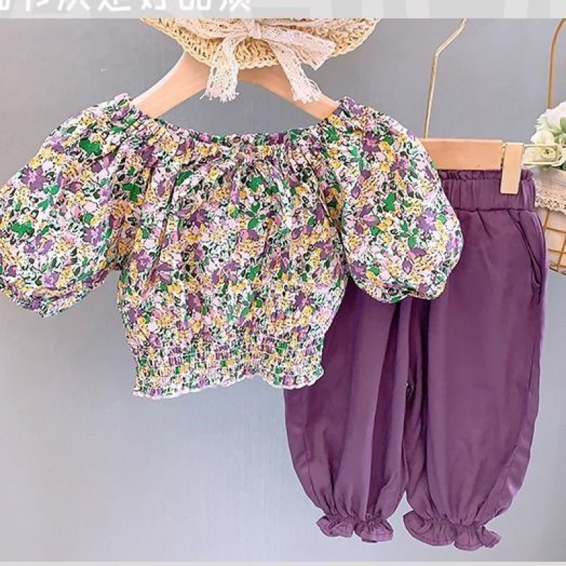 Girl's summer clothing suit 2021 new children female baby crushed floral blouse light cage pants two sets of summer thin