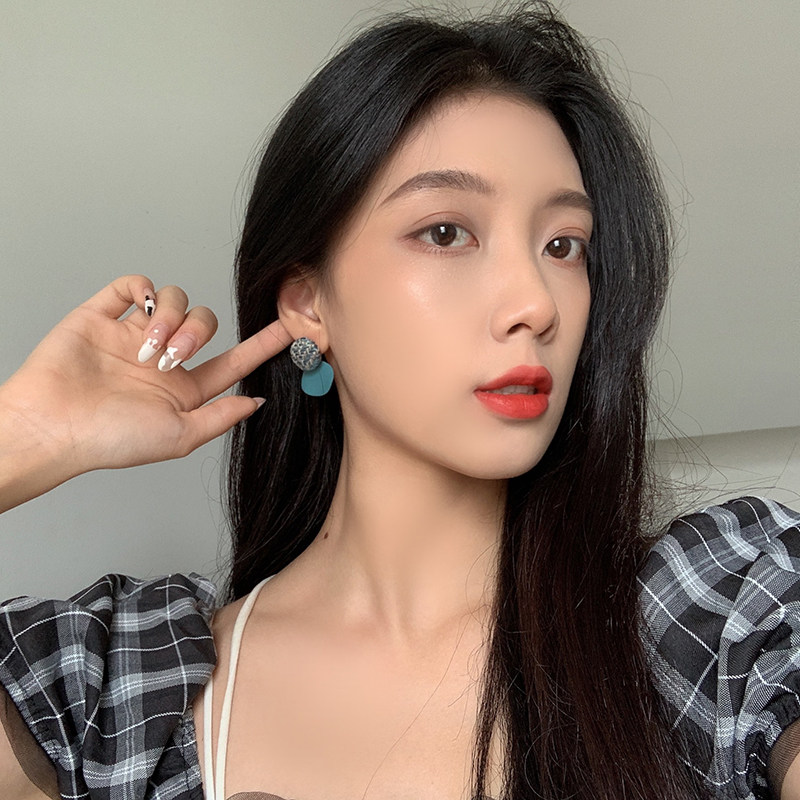 Haze Blue Earring 2021 new tide ear needle advanced fashion temperament blue ear - decorated with ear - hole clamps