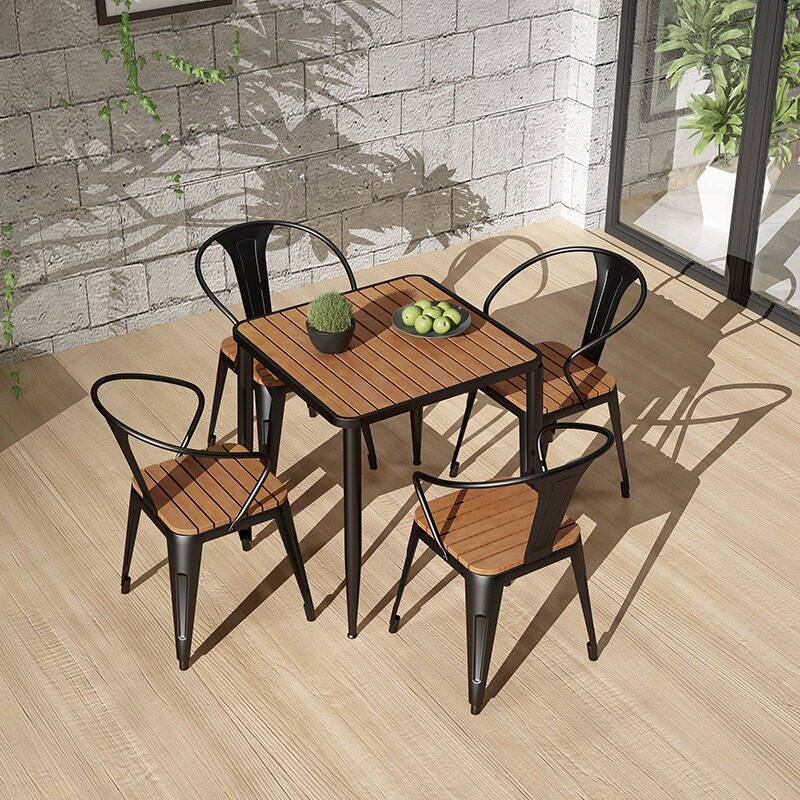 Outdoor leisure balcony small table and chair outdoor garden wrought iron plastic wood square table cafe outdoor dining table and chair combination