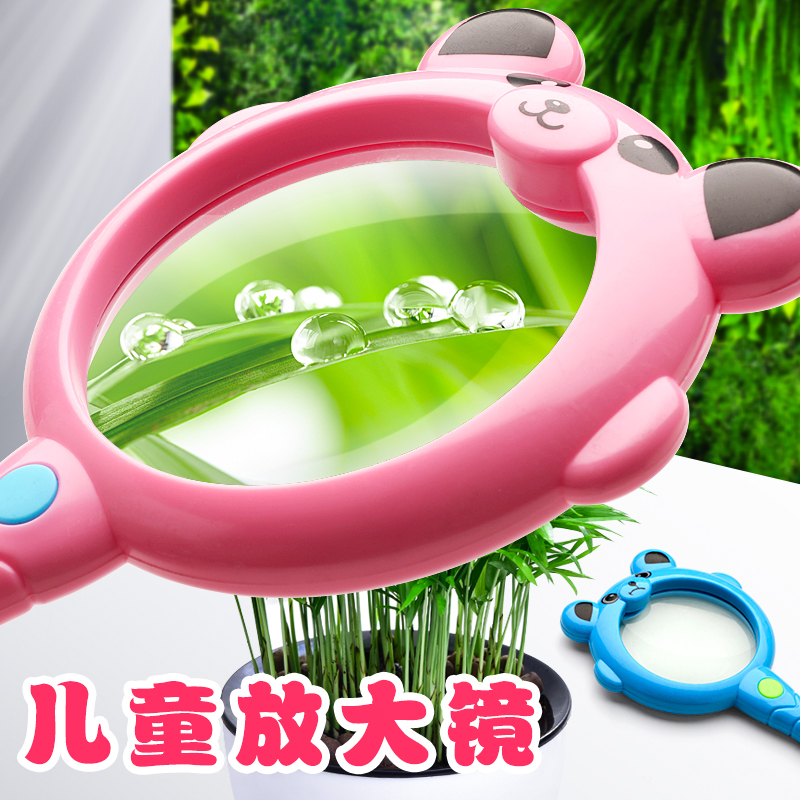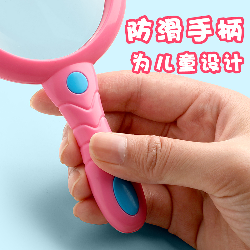 Children's magnifier handheld magnifying glass cartoon modeling science kindergarten HD cute toy baby primary school students with portable observation magnifying glass anti-fall child diameter 60mm