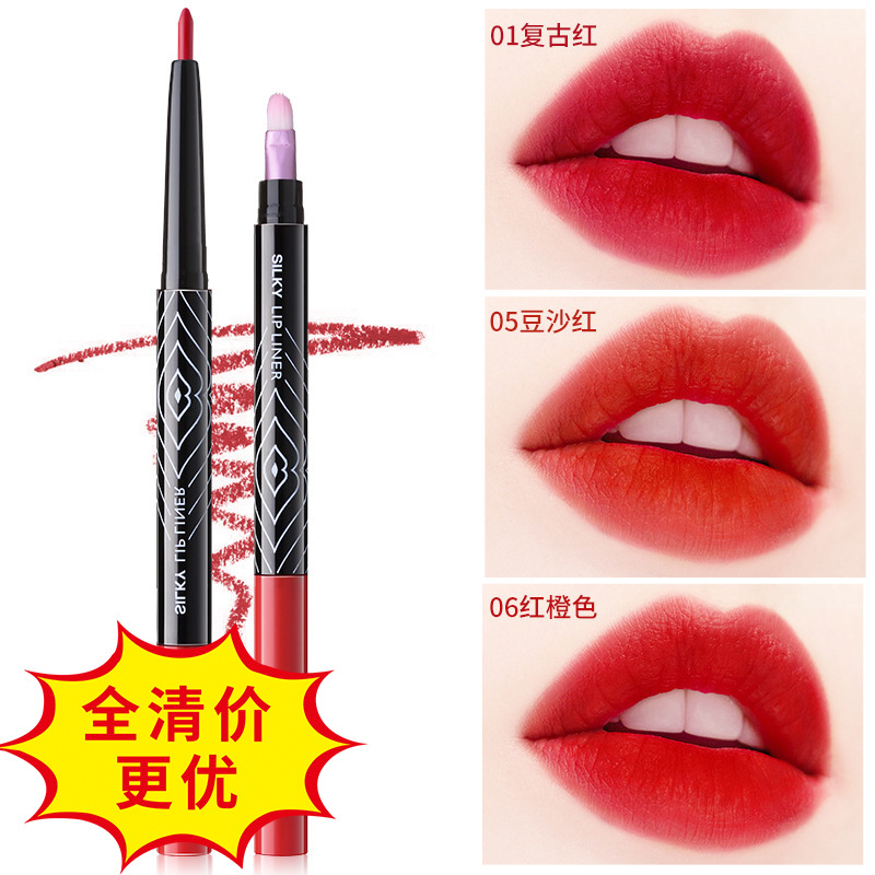 Double head lip line pen beginners waterproof and persistent not to drop color fog surface lipstick red pen bean paste red beginner scholar portable woman