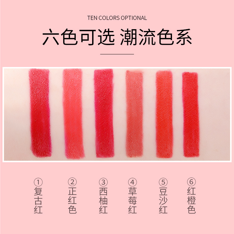 1#復古红 2#正红色 3#西柚红 4#草莓红 5#豆沙红 6#红橙色