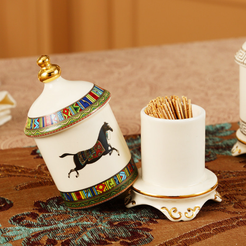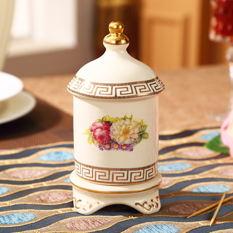 European-style Ceramic Toothpick Box Home Living Room Toothpick Cylinder Light Lavish Nordic Toothpick Bucket Hotel Special Dining Room Portable