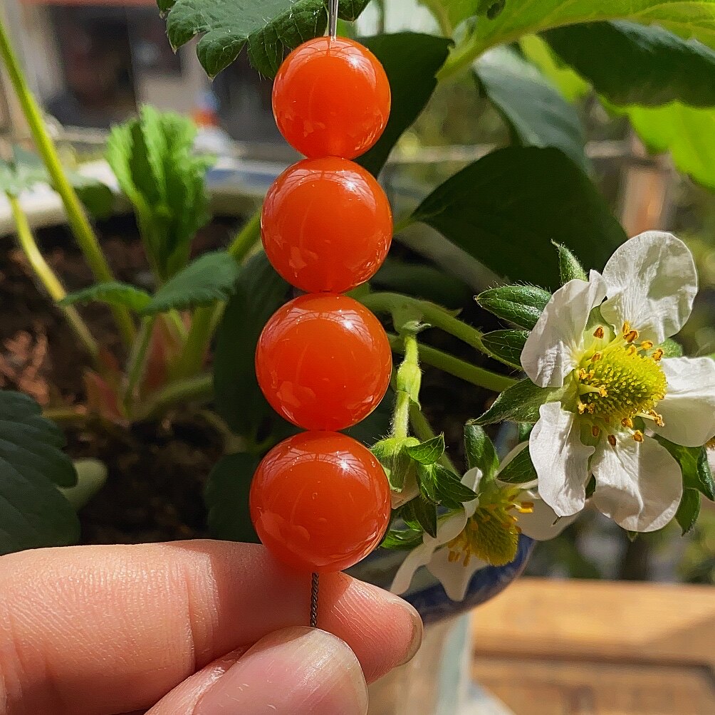 Natural raw ore Baoshan willow material round beads loose beads persimmon Hongnan red agate jewelry with bead top beads spot inlay
