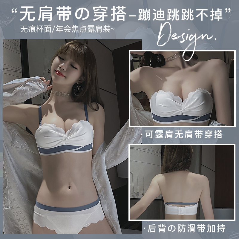 Strapless non-slip underwear women's small breasts gathered to collect auxiliary breasts to prevent sagging without steel ring on the support adjustment underwear set