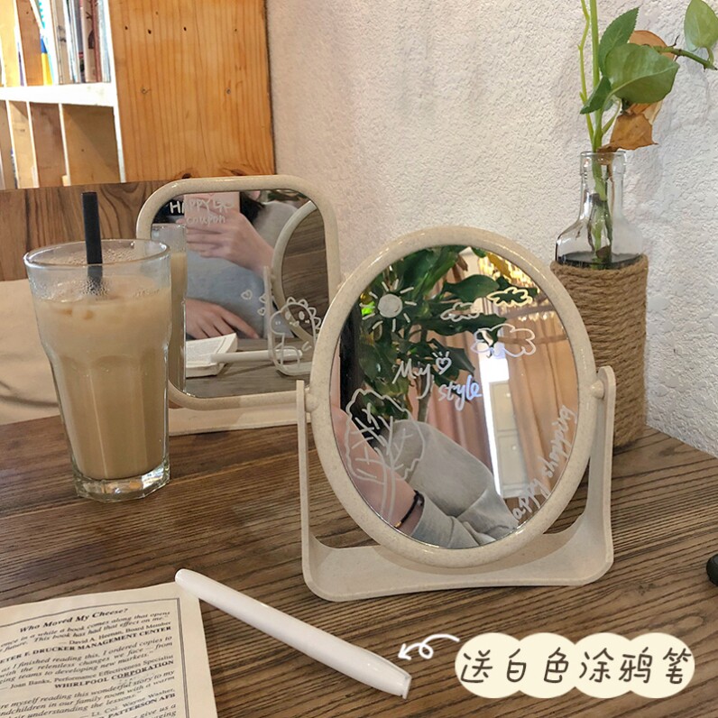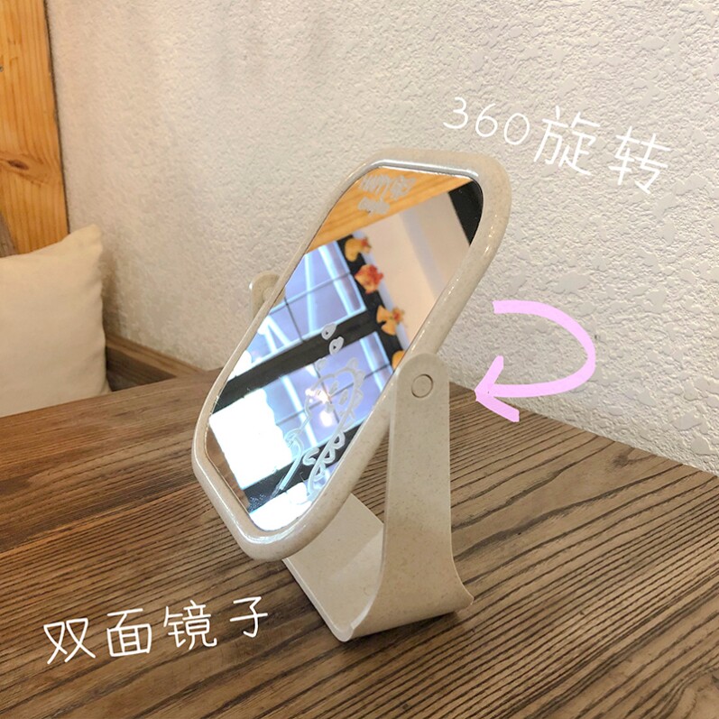 ins Wind Net red mirror desktop makeup mirror double-sided girl heart desktop can stand dormitory large student dressing mirror