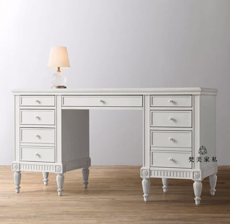 Face-style solid wood desk American retro carved drawers study table home writing desk computer table and chairs combined furniture-Taobao