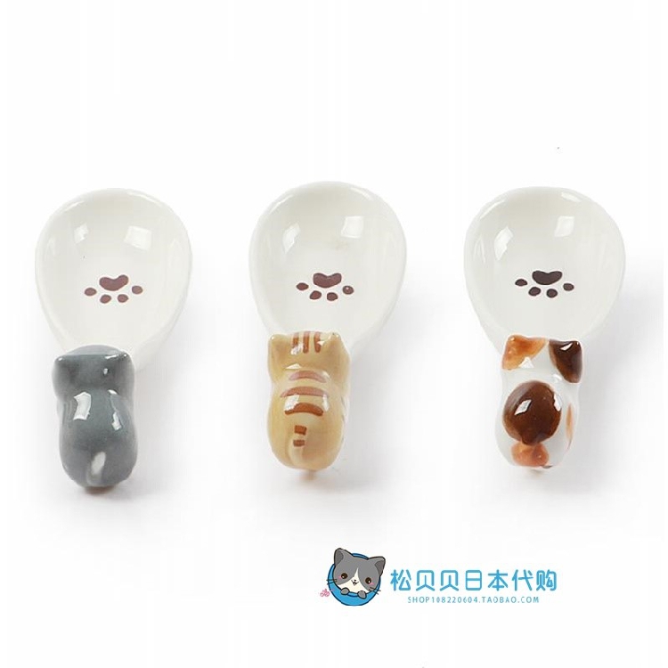 Three - flower cat spoon yellow cat spoon and gray cat spoon three cat spoons