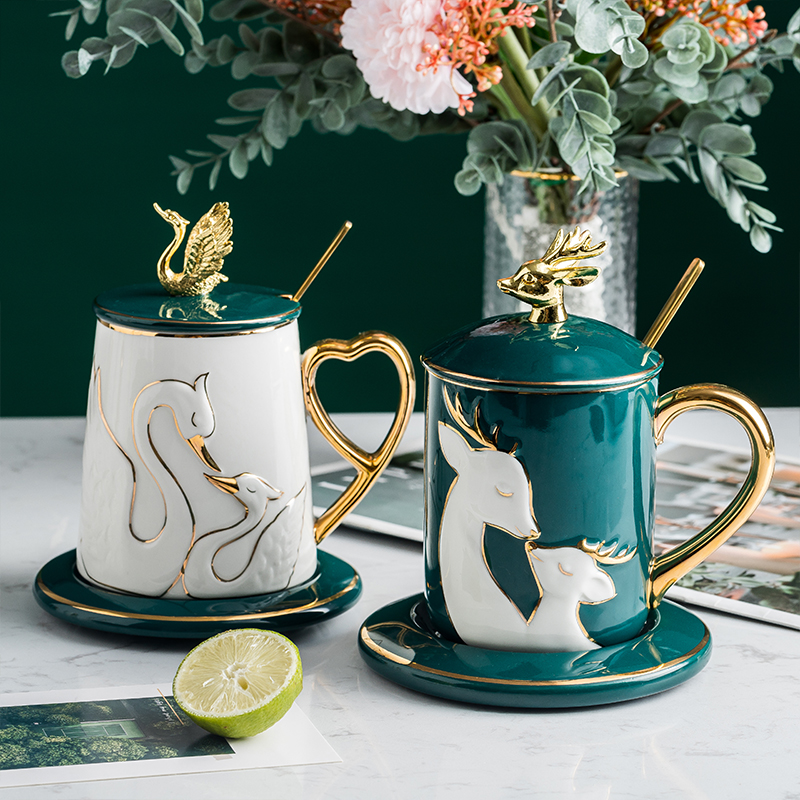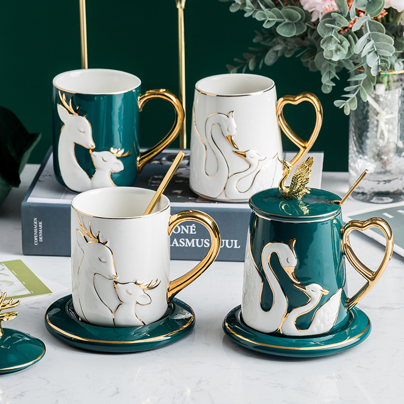 Blue Bluff Cup covers Dish Spoon White Deer Cup Cover Dish Scoon Green Swan Cup Cover Dish Spoon White Swan Cup Cover Dish Scoon Deer Swan White Deer Swan