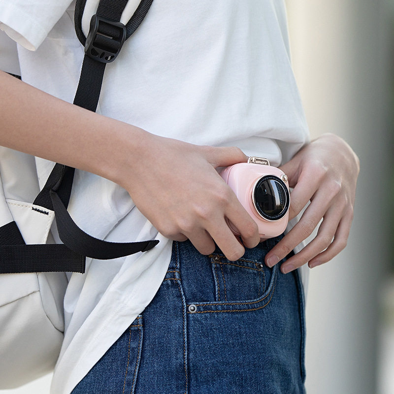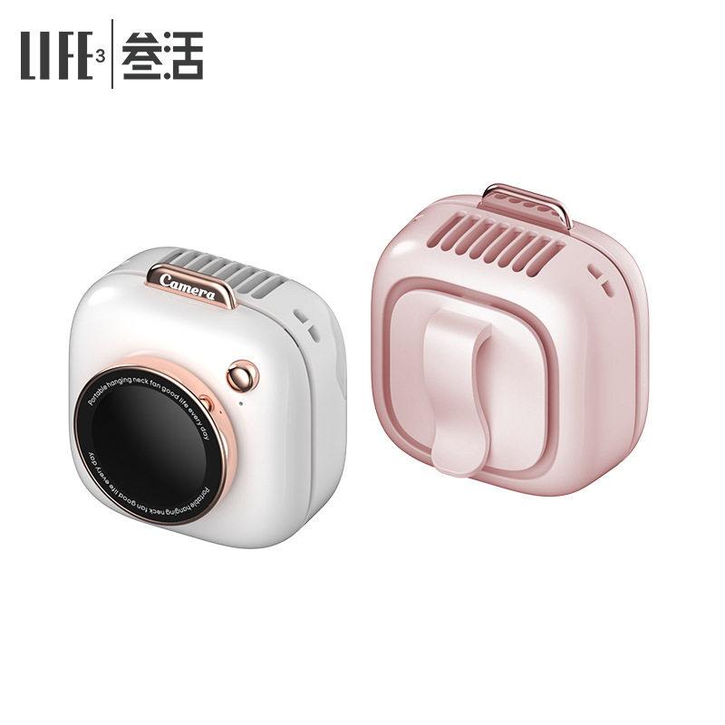 Creative hanging neck small fan portable camera USB charging children's camera cute lazy student clip waist charging fan