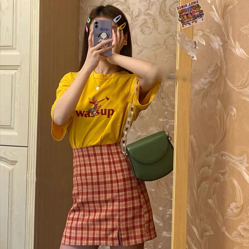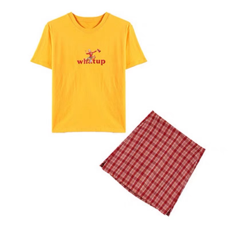 Summer Fried Street Can Salt sweet suit Skirt Women Meta gas Girl wearing a lap short sleeve blouse matching plaid short dress Two sets